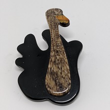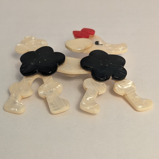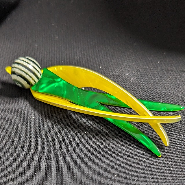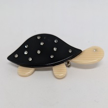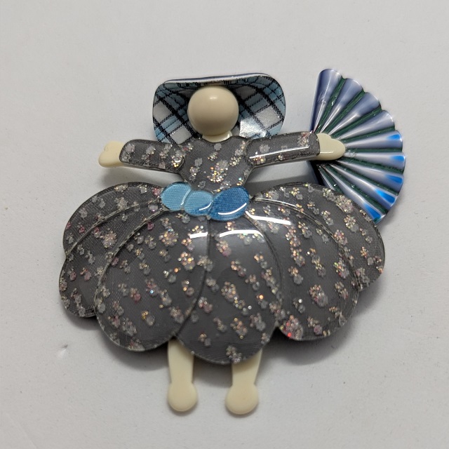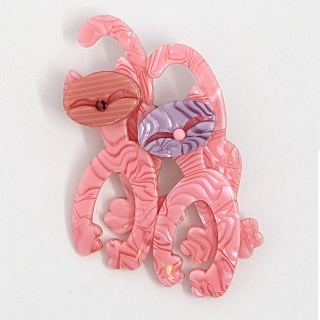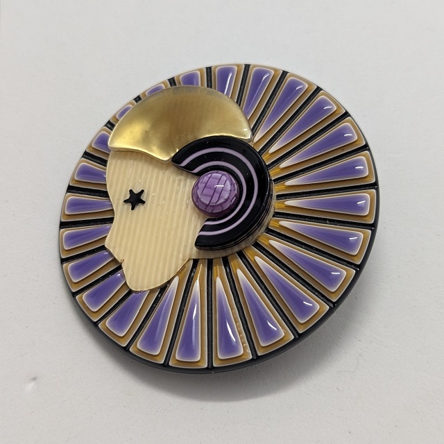 Léa Stein is a French artist and accessories maker, known for her compressed plastic buttons, brooches and bracelets. Here you will mostly only find brooches, as this is what we aim to keep in stock as much as possible. Her brooches feature animals, cars, household items, celebrities and people in a distinctive style, sometimes resembling Art-Deco.